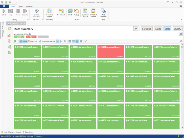 Do you want to see status of all monitored hosts on a single screen? The program has special views that allow to display host state and connection quality information for all hosts on a single screen. Use data sorting, grouping and filtering features to display important info.
